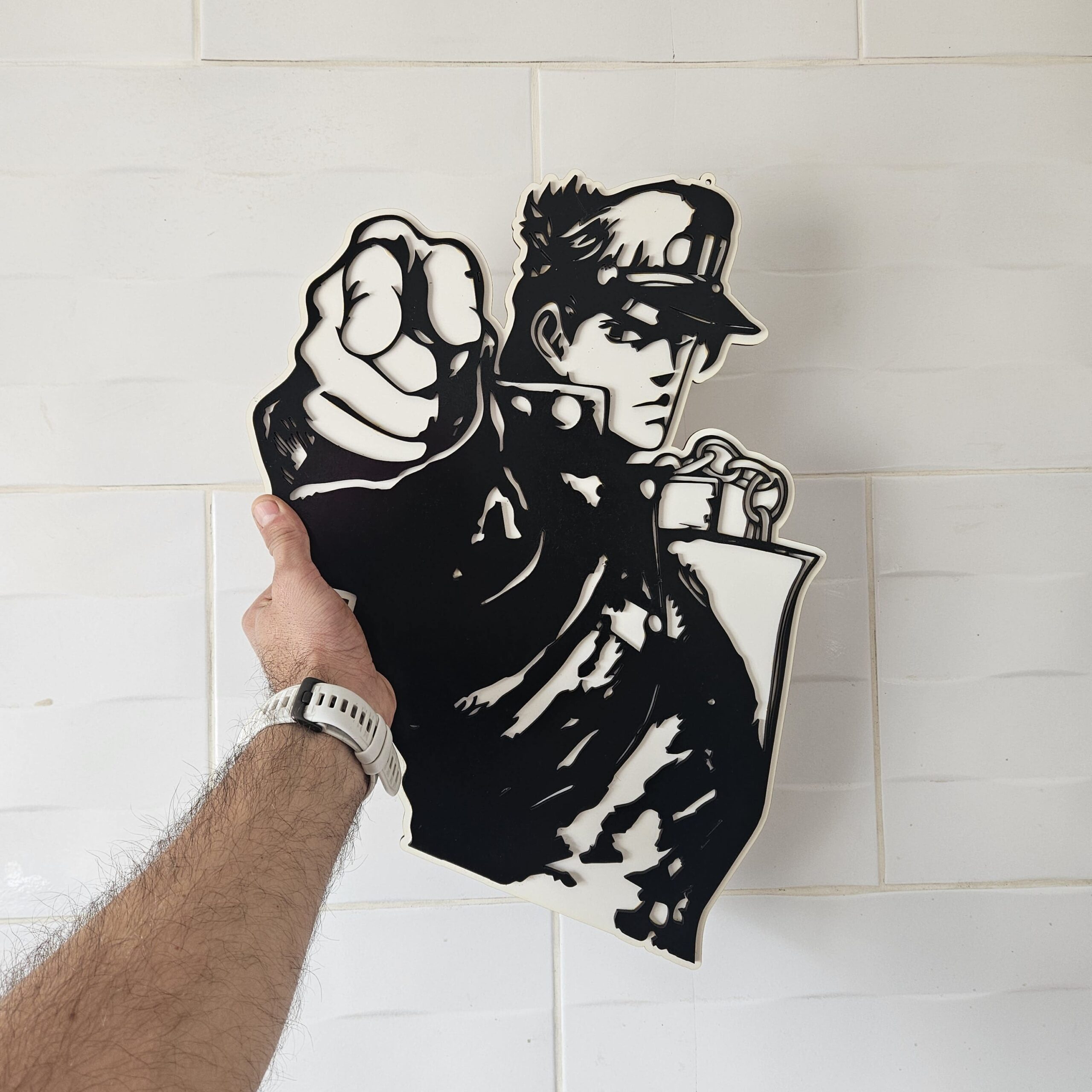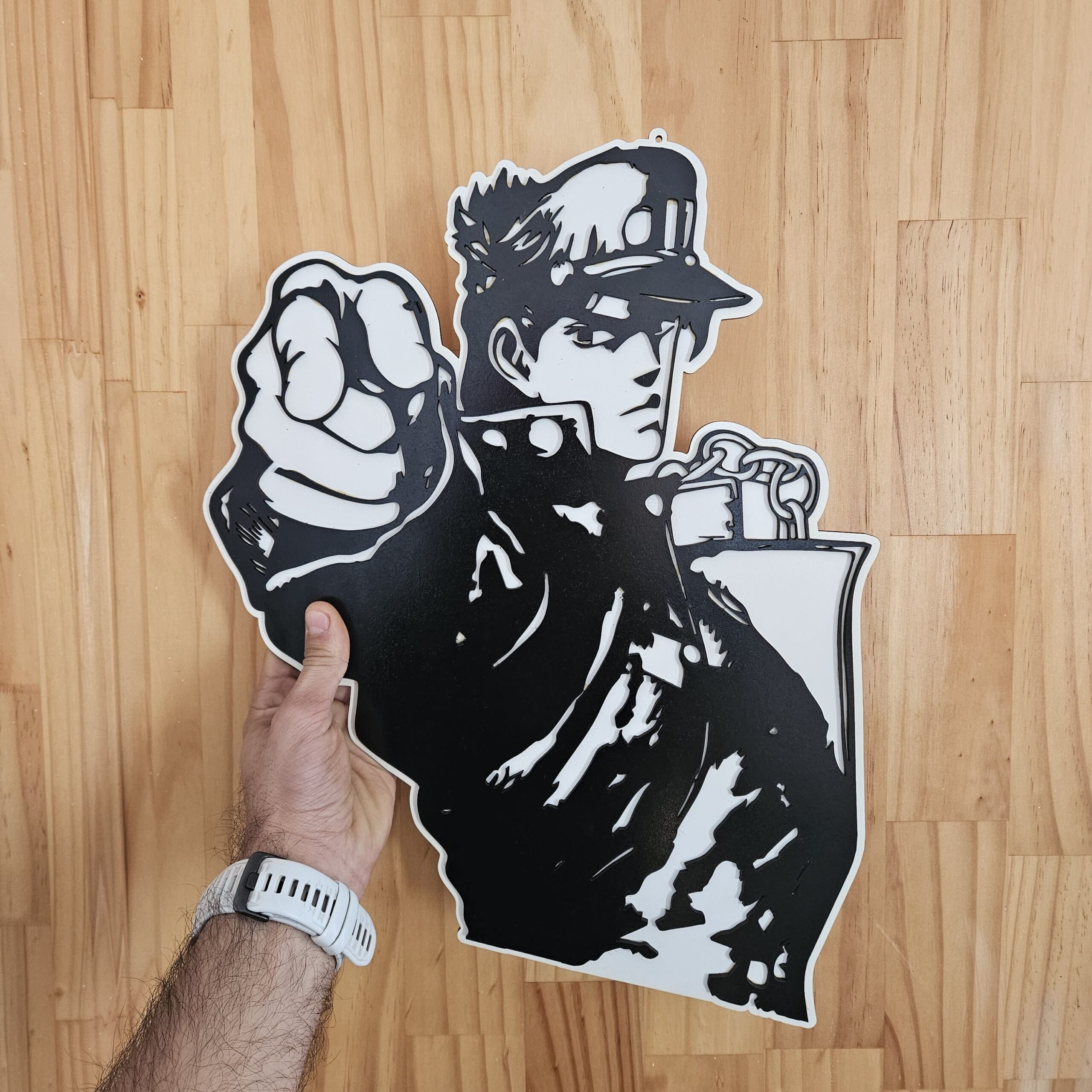 Dale ese toque especial a tu hogar o espacio con tu personaje de anime favorito, cortado en Durolac de 2.8mm en colores blanco y negro para lograr un mayor contraste.